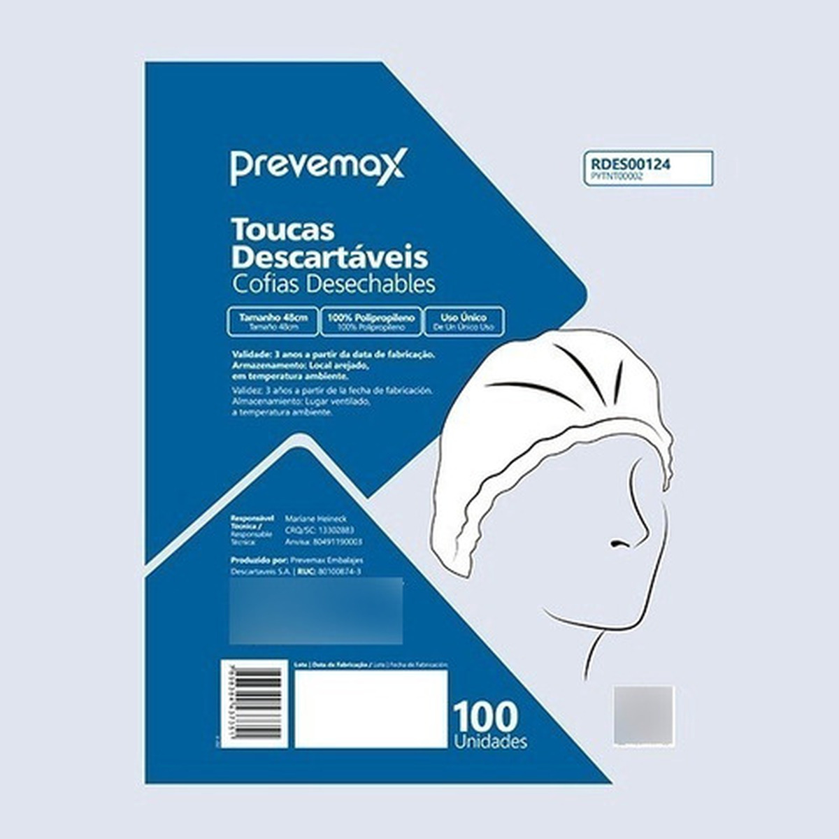 Instruções de Uso: Indicada para proteção da cabeça do trabalhador e para evitar queda do cabelo no produto, impedindo sua contaminação e contato do cabelo com máquinas que possam colocar em perigo o trabalhador. Produto de amplo uso em unidades de saúde. Retirar a touca de sua embalagem e colocá-la na cabeça começando a partir da testa para a base da nuca. Adaptar na cabeça de modo confortável.