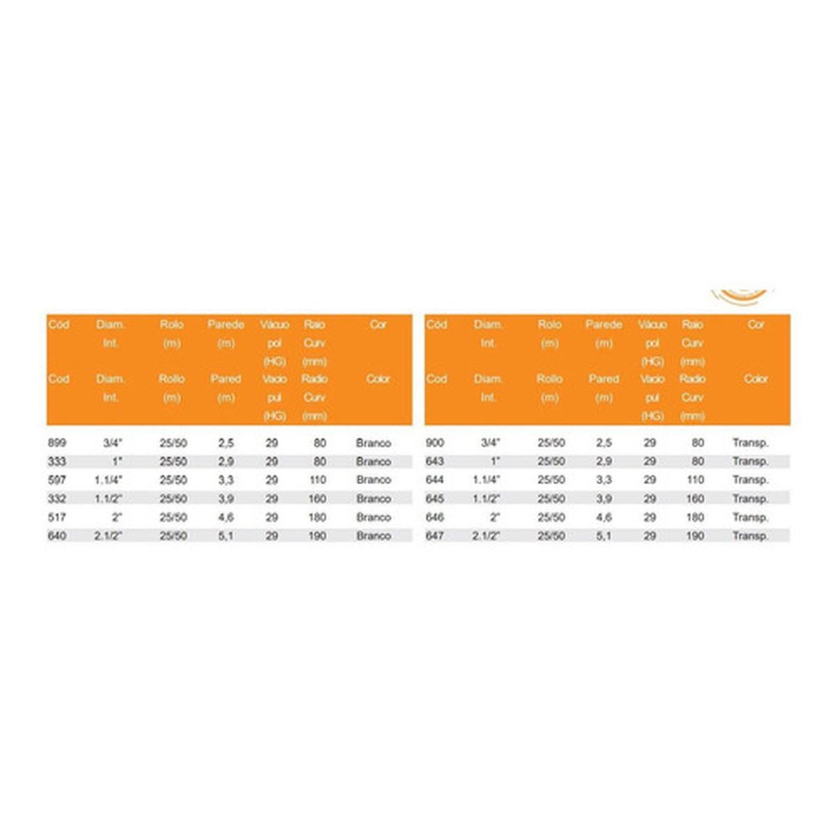 Mangueira Espiral Atóxica Diam 2, Parede 4,6 Pabovi (1 metro)