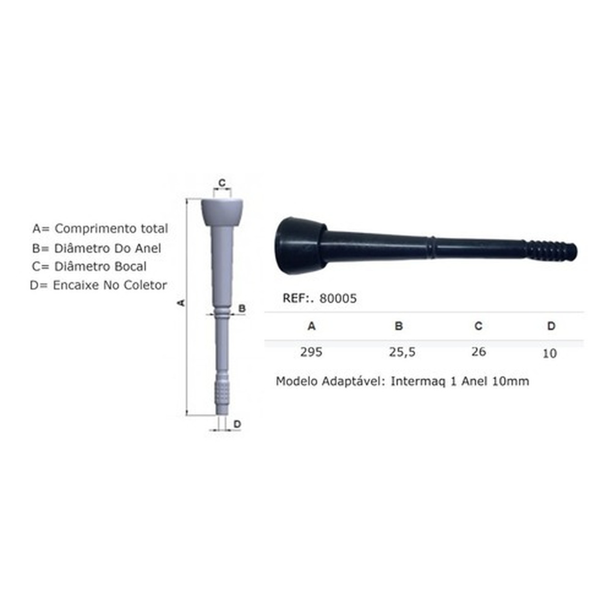 Encaixe no coletor (D): 10 mm